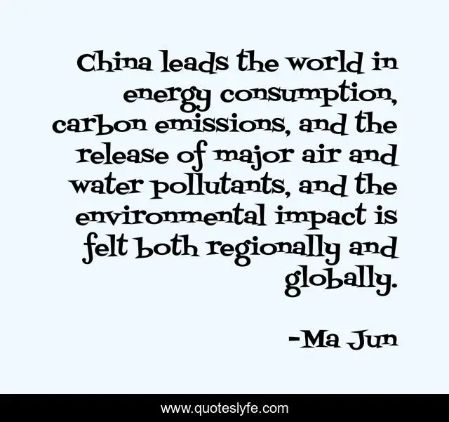 This page presents the quote "China leads the world in energy consumption, carbon emissions, and the release of major air and water pollutants, and the environmental impact is felt both regionally and globally.". Author of this quote is Ma Jun. This quote is about water, impact, world,.