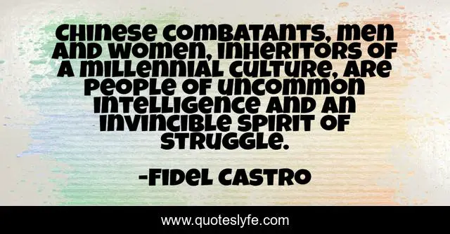 This page presents the quote "Chinese combatants, men and women, inheritors of a millennial culture, are people of uncommon intelligence and an invincible spirit of struggle.". Author of this quote is Fidel Castro. This quote is about culture, struggle, women,.