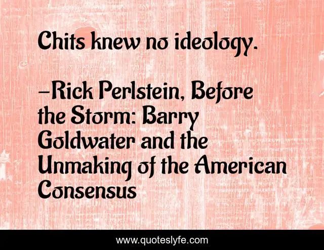 "Rick Perlstein, Before the Storm: Barry Goldwater and the Unmaking of the American Consensus Quotes." Quoteslyfe.com, 2025. Fri. 05 Dec. 2025. <https://www.quoteslyfe.com/quote/Chits-knew-no-ideology-230386>.