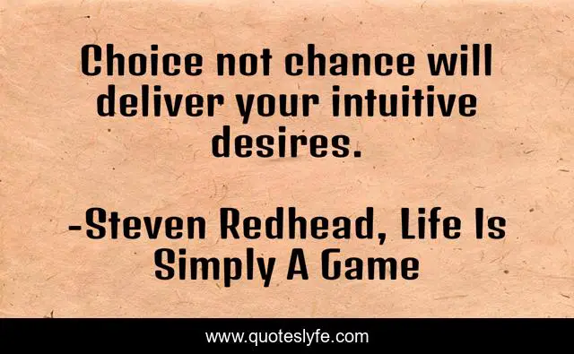"Steven Redhead, Life Is Simply A Game Quotes." Quoteslyfe.com, 2025. Sat. 06 Dec. 2025. <https://www.quoteslyfe.com/quote/Choice-not-chance-will-deliver-your-intuitive-252817>.