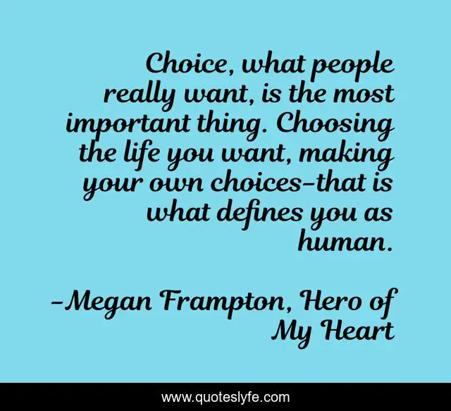 "Megan Frampton, Hero of My Heart Quotes." Quoteslyfe.com, 2025. Fri. 05 Dec. 2025. <https://www.quoteslyfe.com/quote/Choice-what-people-really-want-is-the-116402>.