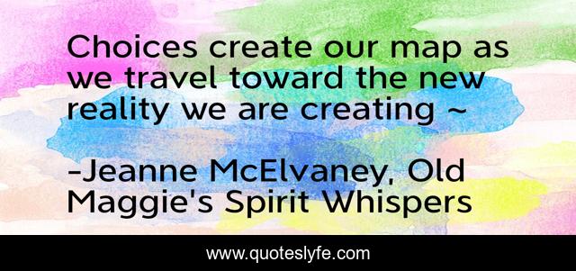 "Jeanne McElvaney, Old Maggie's Spirit Whispers Quotes." Quoteslyfe.com, 2025. Fri. 05 Dec. 2025. <https://www.quoteslyfe.com/quote/Choices-create-our-map-as-we-travel-106568>.