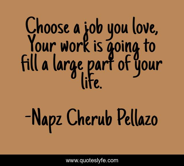 This page presents the quote "Choose a job you love, Your work is going to fill a large part of your life.". Author of this quote is Napz Cherub Pellazo. This quote is about life, work, labor-day, job, part-of-your-life, inspirational, choose-a-job-you-love, enthusiasm,.