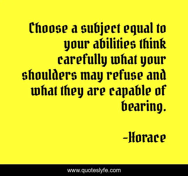 This page presents the quote "Choose a subject equal to your abilities think carefully what your shoulders may refuse and what they are capable of bearing.". Author of this quote is Horace. .