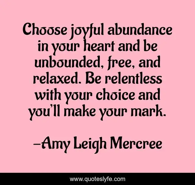 "Amy Leigh Mercree Quotes." Quoteslyfe.com, 2025. Mon. 08 Dec. 2025. <https://www.quoteslyfe.com/quote/Choose-joyful-abundance-in-your-heart-and-14241>.