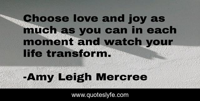 This page presents the quote "Choose love and joy as much as you can in each moment and watch your life transform.". Author of this quote is Amy Leigh Mercree. This quote is about life, quotes-de-la-vida, love, quote-of-the-day, amy-leigh-mercree, transformation, quotes-tumblr, quotes-for-instagram, inspirational,.