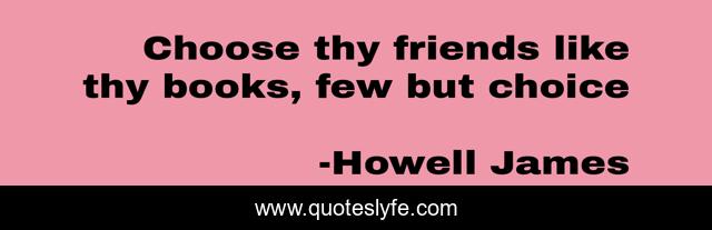 This page presents the quote "Choose thy friends like thy books, few but choice". Author of this quote is Howell James. This quote is about friends, books, friendship,.