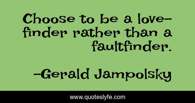 This page presents the quote "Choose to be a love-finder rather than a faultfinder.". Author of this quote is Gerald Jampolsky. .