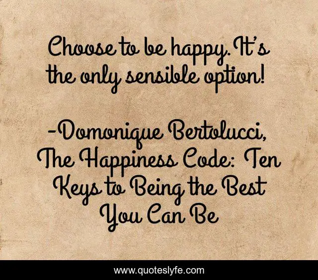 "Domonique Bertolucci, The Happiness Code: Ten Keys to Being the Best You Can Be Quotes." Quoteslyfe.com, 2025. Mon. 08 Dec. 2025. <https://www.quoteslyfe.com/quote/Choose-to-be-happy-It-s-the-215383>.