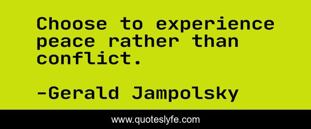 "Gerald Jampolsky Quotes." Quoteslyfe.com, 2025. Mon. 08 Dec. 2025. <https://www.quoteslyfe.com/quote/Choose-to-experience-peace-rather-than-conflict-272714>.