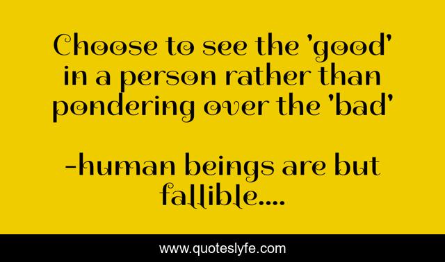 This page presents the quote "Choose to see the 'good' in a person rather than pondering over the 'bad'". Author of this quote is human beings are but fallible..... .