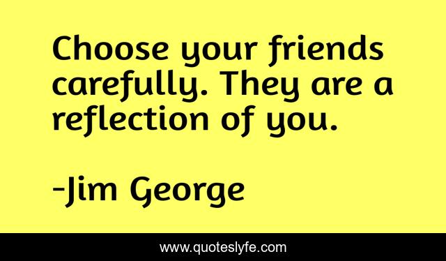 This page presents the quote "Choose your friends carefully. They are a reflection of you.". Author of this quote is Jim George. This quote is about faith, christian, reflection, morals, god, peace, same, bless, reflect,.