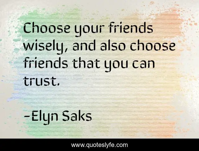 This page presents the quote "Choose your friends wisely, and also choose friends that you can trust.". Author of this quote is Elyn Saks. This quote is about friends, choose,.