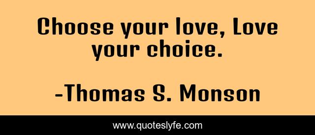 "Thomas S. Monson Quotes." Quoteslyfe.com, 2025. Sun. 07 Dec. 2025. <https://www.quoteslyfe.com/quote/Choose-your-love-Love-your-choice-287174>.