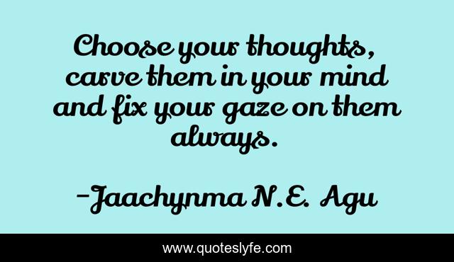 "Jaachynma N.E. Agu Quotes." Quoteslyfe.com, 2025. Fri. 05 Dec. 2025. <https://www.quoteslyfe.com/quote/Choose-your-thoughts-carve-them-in-your-88903>.