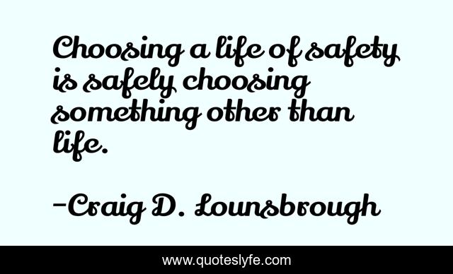 "Craig D. Lounsbrough Quotes." Quoteslyfe.com, 2025. Sat. 06 Dec. 2025. <https://www.quoteslyfe.com/quote/Choosing-a-life-of-safety-is-safely-45792>.