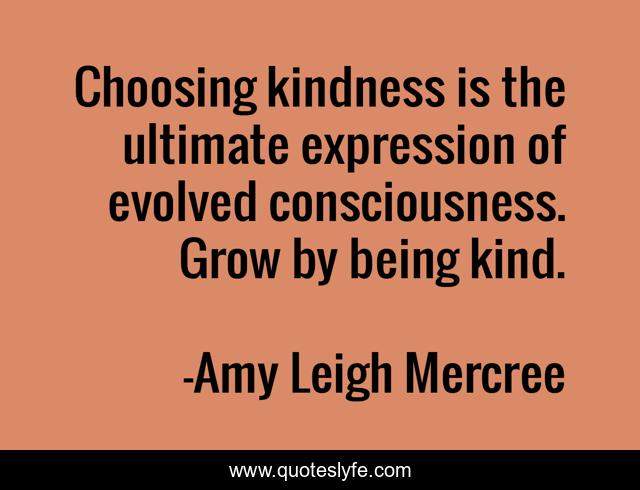 This page presents the quote "Choosing kindness is the ultimate expression of evolved consciousness. Grow by being kind.". Author of this quote is Amy Leigh Mercree. This quote is about quotes-on-growth, kindness, quotes-de-la-vida, amy-leigh-mercree, consciousness, quote-of-the-day, quotes-tumblr, inspirational, quote-about-life,.