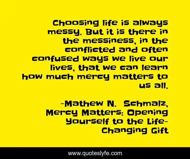 "Mathew N. Schmalz, Mercy Matters: Opening Yourself to the Life-Changing Gift Quotes." Quoteslyfe.com, 2025. Fri. 05 Dec. 2025. <https://www.quoteslyfe.com/quote/Choosing-life-is-always-messy-But-it-169064>.