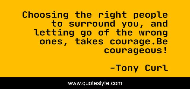 This page presents the quote "Choosing the right people to surround you, and letting go of the wrong ones, takes courage.Be courageous!". Author of this quote is Tony Curl. This quote is about courage, let-go, inspiration,.