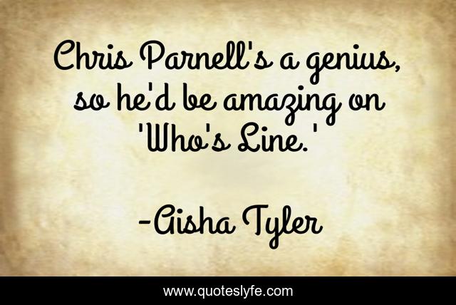This page presents the quote "Chris Parnell's a genius, so he'd be amazing on 'Who's Line.'". Author of this quote is Aisha Tyler. This quote is about genius, line, he,.