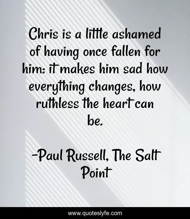 This page presents the quote "Chris is a little ashamed of having once fallen for him: it makes him sad how everything changes, how ruthless the heart can be.". Author of this quote is Paul Russell, The Salt Point. .