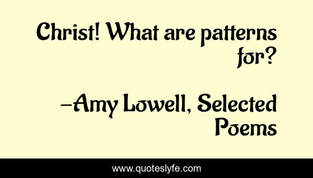 "Amy Lowell, Selected Poems Quotes." Quoteslyfe.com, 2025. Fri. 05 Dec. 2025. <https://www.quoteslyfe.com/quote/Christ-What-are-patterns-for-52574>.