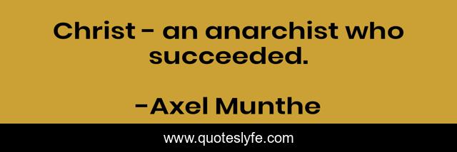 This page presents the quote "Christ - an anarchist who succeeded.". Author of this quote is Axel Munthe. .