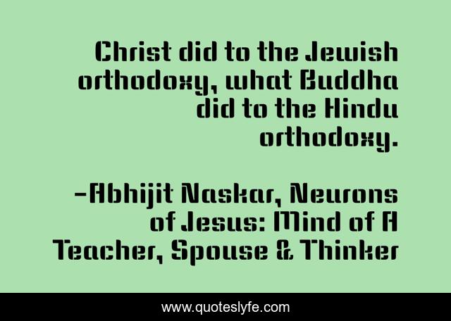 "Abhijit Naskar, Neurons of Jesus: Mind of A Teacher, Spouse & Thinker Quotes." Quoteslyfe.com, 2025. Mon. 08 Dec. 2025. <https://www.quoteslyfe.com/quote/Christ-did-to-the-Jewish-orthodoxy-what-123918>.