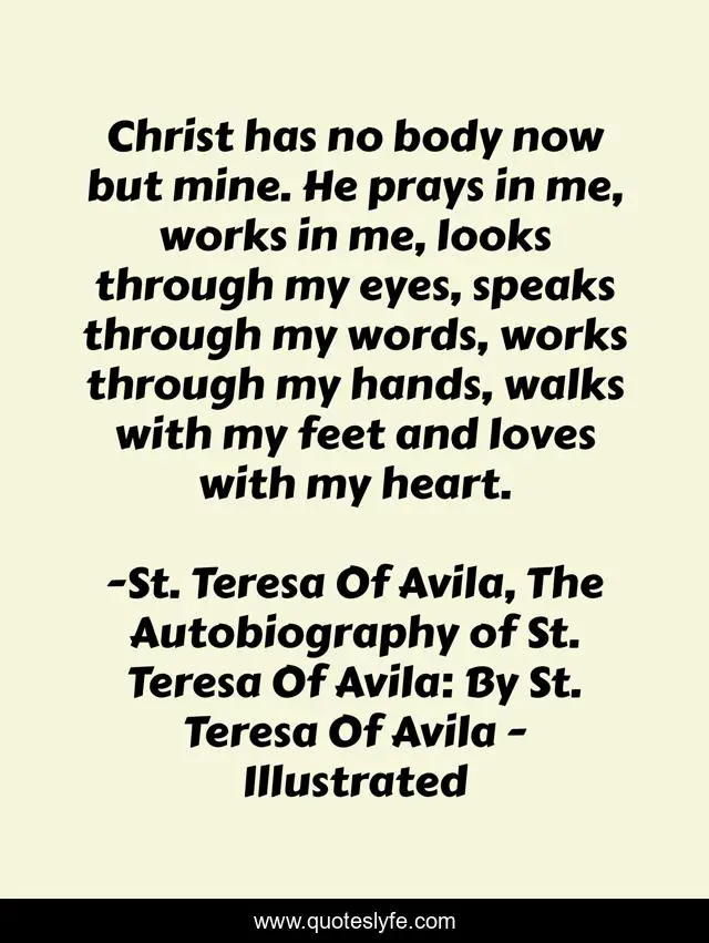 "St. Teresa Of Avila, The Autobiography of St. Teresa Of Avila: By St. Teresa Of Avila - Illustrated Quotes." Quoteslyfe.com, 2025. Mon. 08 Dec. 2025. <https://www.quoteslyfe.com/quote/Christ-has-no-body-now-but-mine-15949>.