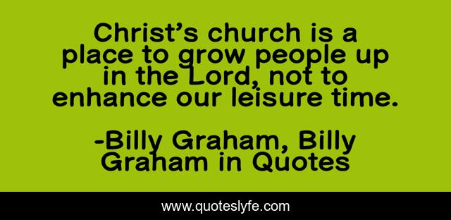 This page presents the quote "Christ’s church is a place to grow people up in the Lord, not to enhance our leisure time.". Author of this quote is Billy Graham, Billy Graham in Quotes. This quote is about billy-graham, church,.