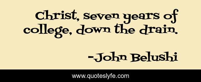 This page presents the quote "Christ, seven years of college, down the drain.". Author of this quote is John Belushi. This quote is about college, humor,.