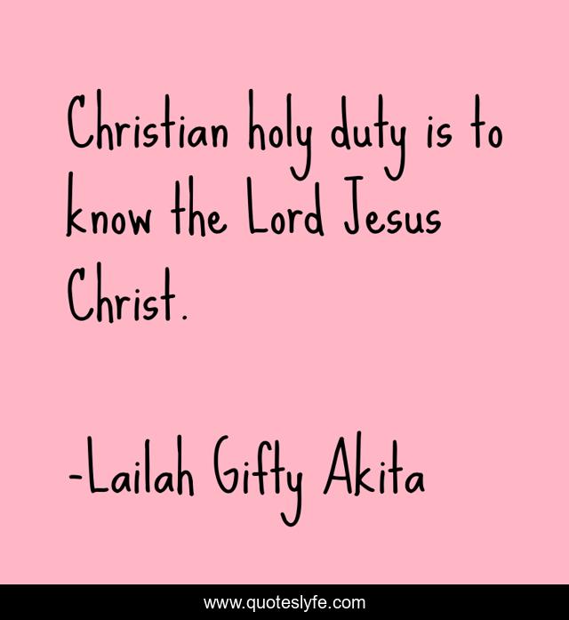This page presents the quote "Christian holy duty is to know the Lord Jesus Christ.". Author of this quote is Lailah Gifty Akita. This quote is about duty, jesus-christ, christian, religious-faith,.