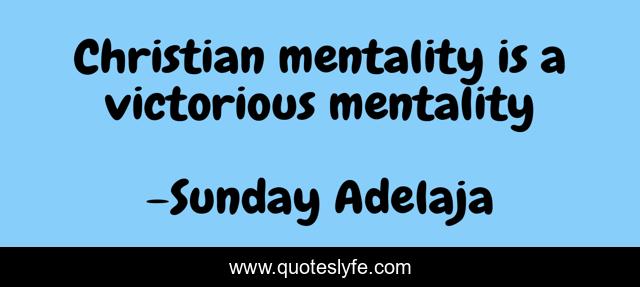 "Sunday Adelaja Quotes." Quoteslyfe.com, 2025. Fri. 05 Dec. 2025. <https://www.quoteslyfe.com/quote/Christian-mentality-is-a-victorious-mentality-84816>.