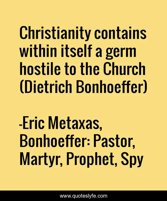 "Eric Metaxas, Bonhoeffer: Pastor, Martyr, Prophet, Spy Quotes." Quoteslyfe.com, 2025. Fri. 05 Dec. 2025. <https://www.quoteslyfe.com/quote/Christianity-contains-within-itself-a-germ-hostile-30219>.