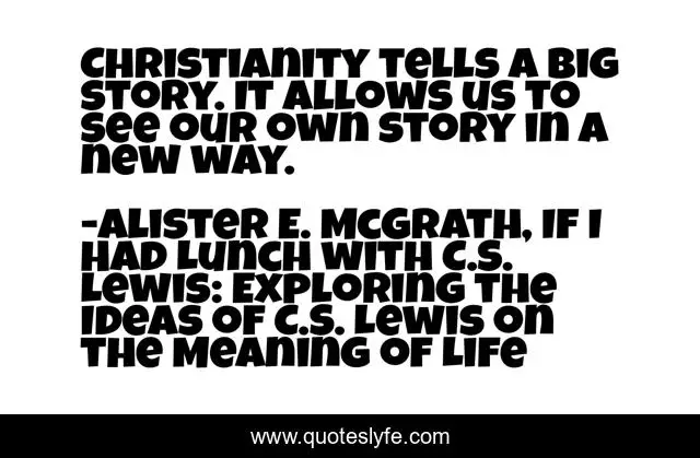"Alister E. McGrath, If I Had Lunch with C.S. Lewis: Exploring the Ideas of C.S. Lewis on the Meaning of Life Quotes." Quoteslyfe.com, 2025. Mon. 08 Dec. 2025. <https://www.quoteslyfe.com/quote/Christianity-tells-a-big-story-It-allows-205935>.