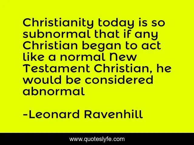 This page presents the quote "Christianity today is so subnormal that if any Christian began to act like a normal New Testament Christian, he would be considered abnormal". Author of this quote is Leonard Ravenhill. .