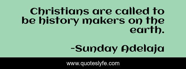This page presents the quote "Christians are called to be history makers on the earth.". Author of this quote is Sunday Adelaja. This quote is about history-makers, earth,.