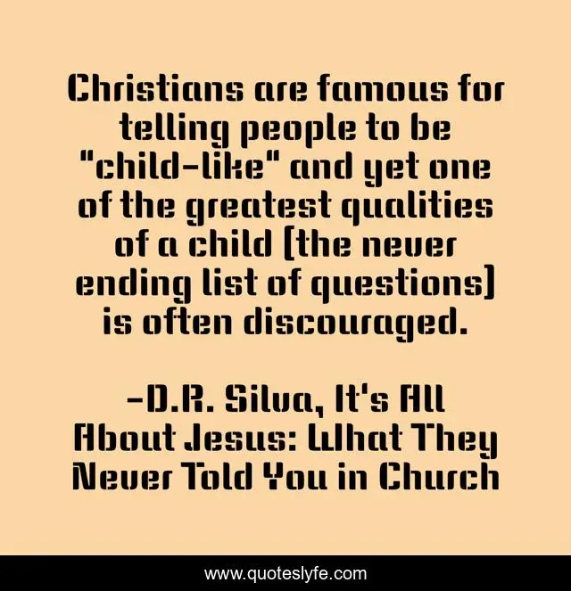 "D.R. Silva, It's All About Jesus: What They Never Told You in Church Quotes." Quoteslyfe.com, 2025. Sat. 06 Dec. 2025. <https://www.quoteslyfe.com/quote/Christians-are-famous-for-telling-people-to-100220>.