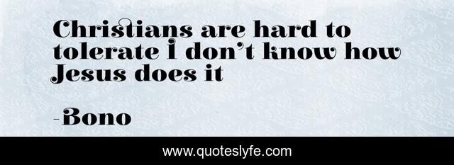 This page presents the quote "Christians are hard to tolerate I don’t know how Jesus does it". Author of this quote is Bono. This quote is about religion, christian-behavior,.