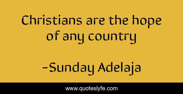 This page presents the quote "Christians are the hope of any country". Author of this quote is Sunday Adelaja. This quote is about country, christians, hope,.
