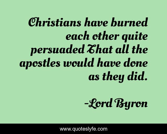 This page presents the quote "Christians have burned each other quite persuaded That all the apostles would have done as they did.". Author of this quote is Lord Byron. This quote is about christians, christianity,.