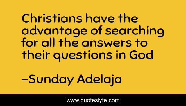 This page presents the quote "Christians have the advantage of searching for all the answers to their questions in God". Author of this quote is Sunday Adelaja. This quote is about god, christian, solution, answers, wealth,.