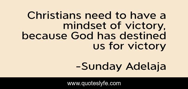 This page presents the quote "Christians need to have a mindset of victory, because God has destined us for victory". Author of this quote is Sunday Adelaja. This quote is about christians, god, victory, destined, mindset,.