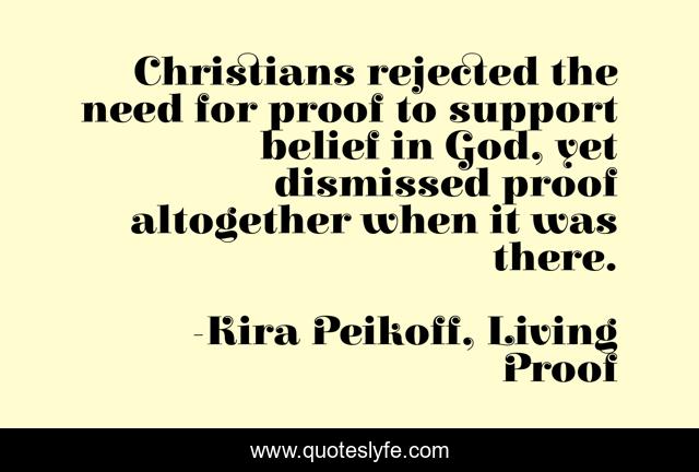 "Kira Peikoff, Living Proof Quotes." Quoteslyfe.com, 2025. Sat. 06 Dec. 2025. <https://www.quoteslyfe.com/quote/Christians-rejected-the-need-for-proof-to-30240>.