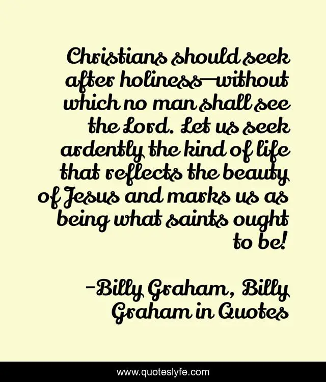 "Billy Graham, Billy Graham in Quotes Quotes." Quoteslyfe.com, 2025. Sat. 06 Dec. 2025. <https://www.quoteslyfe.com/quote/Christians-should-seek-after-holiness-without-which-152768>.