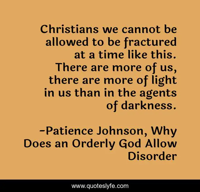 "Patience Johnson, Why Does an Orderly God Allow Disorder Quotes." Quoteslyfe.com, 2025. Fri. 05 Dec. 2025. <https://www.quoteslyfe.com/quote/Christians-we-cannot-be-allowed-to-be-20584>.