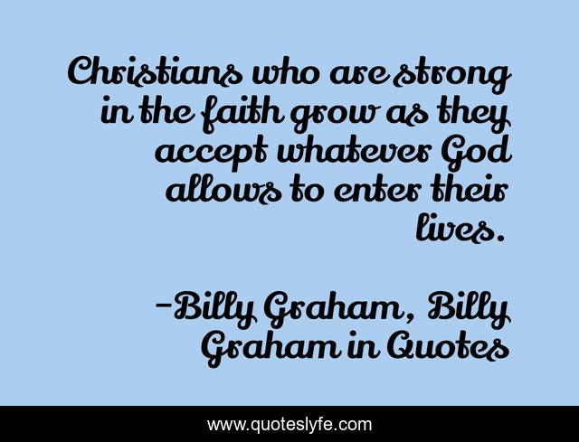 This page presents the quote "Christians who are strong in the faith grow as they accept whatever God allows to enter their lives.". Author of this quote is Billy Graham, Billy Graham in Quotes. This quote is about faith, billy-graham,.