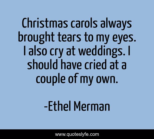 This page presents the quote "Christmas carols always brought tears to my eyes. I also cry at weddings. I should have cried at a couple of my own.". Author of this quote is Ethel Merman. This quote is about eyes, tears, wedding,.