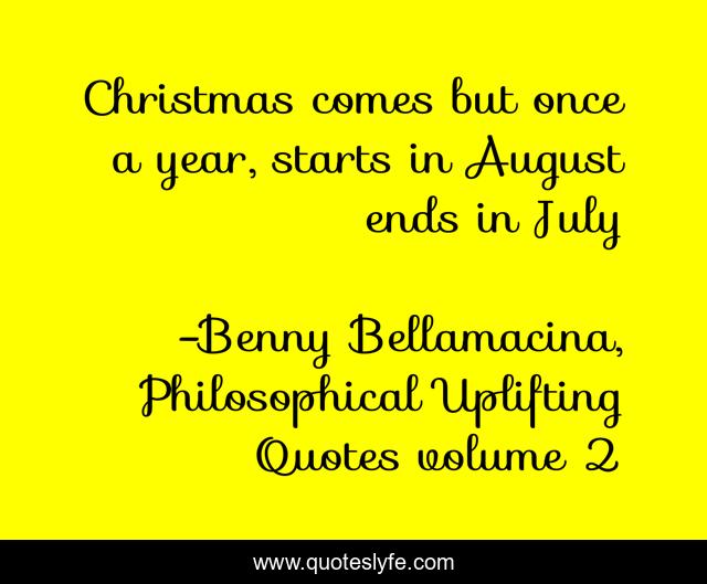 "Benny Bellamacina, Philosophical Uplifting Quotes volume 2 Quotes." Quoteslyfe.com, 2025. Mon. 08 Dec. 2025. <https://www.quoteslyfe.com/quote/Christmas-comes-but-once-a-year-starts-220591>.
