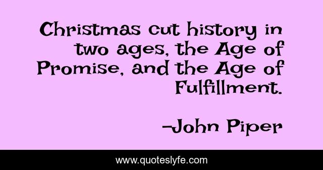 This page presents the quote "Christmas cut history in two ages, the Age of Promise, and the Age of Fulfillment.". Author of this quote is John Piper. This quote is about faithfulness-of-god, prophecy, bible, scripture,.
